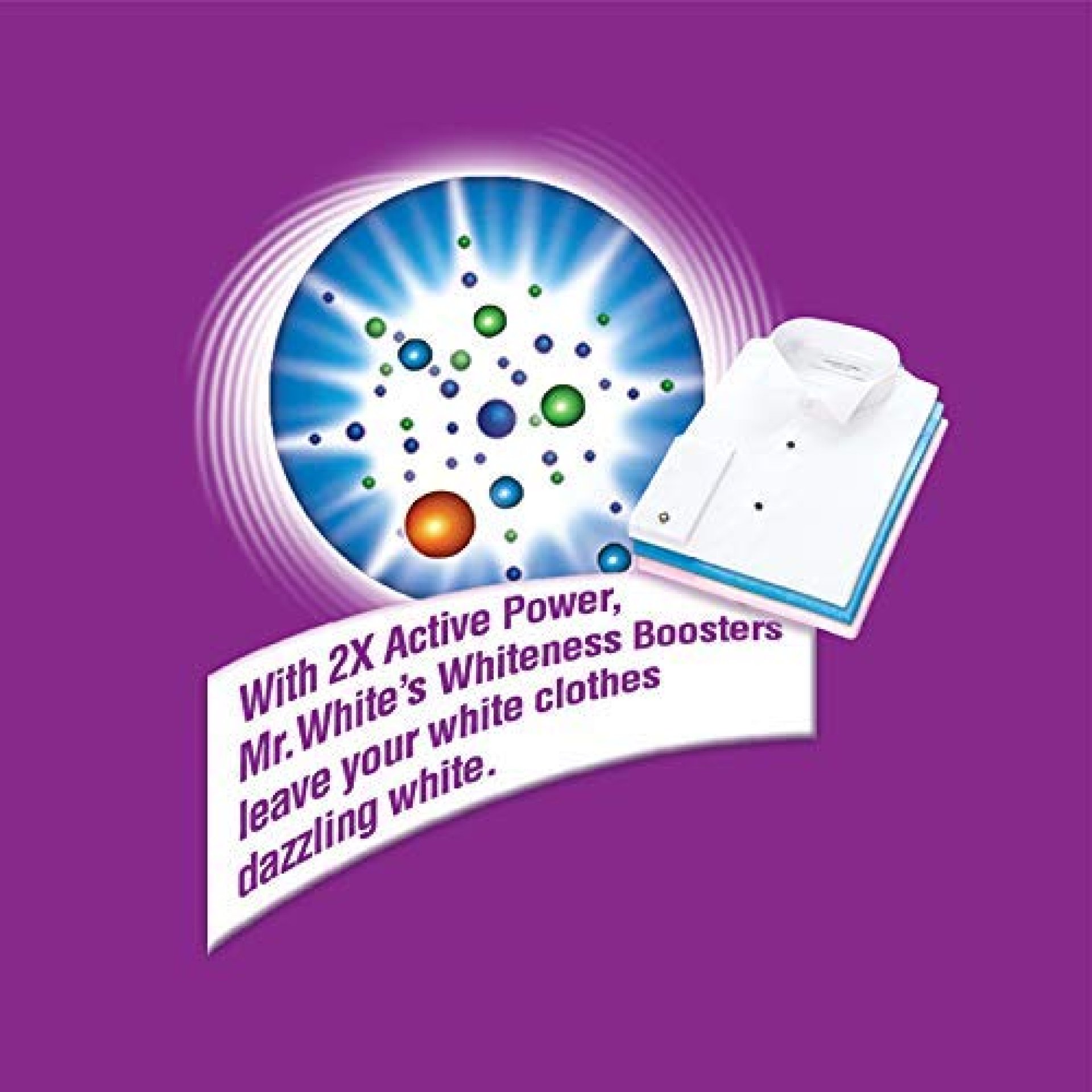 - New Mr. White enriched with 2x active power of whiteness boosters maintains the whiteness of clothes for long time