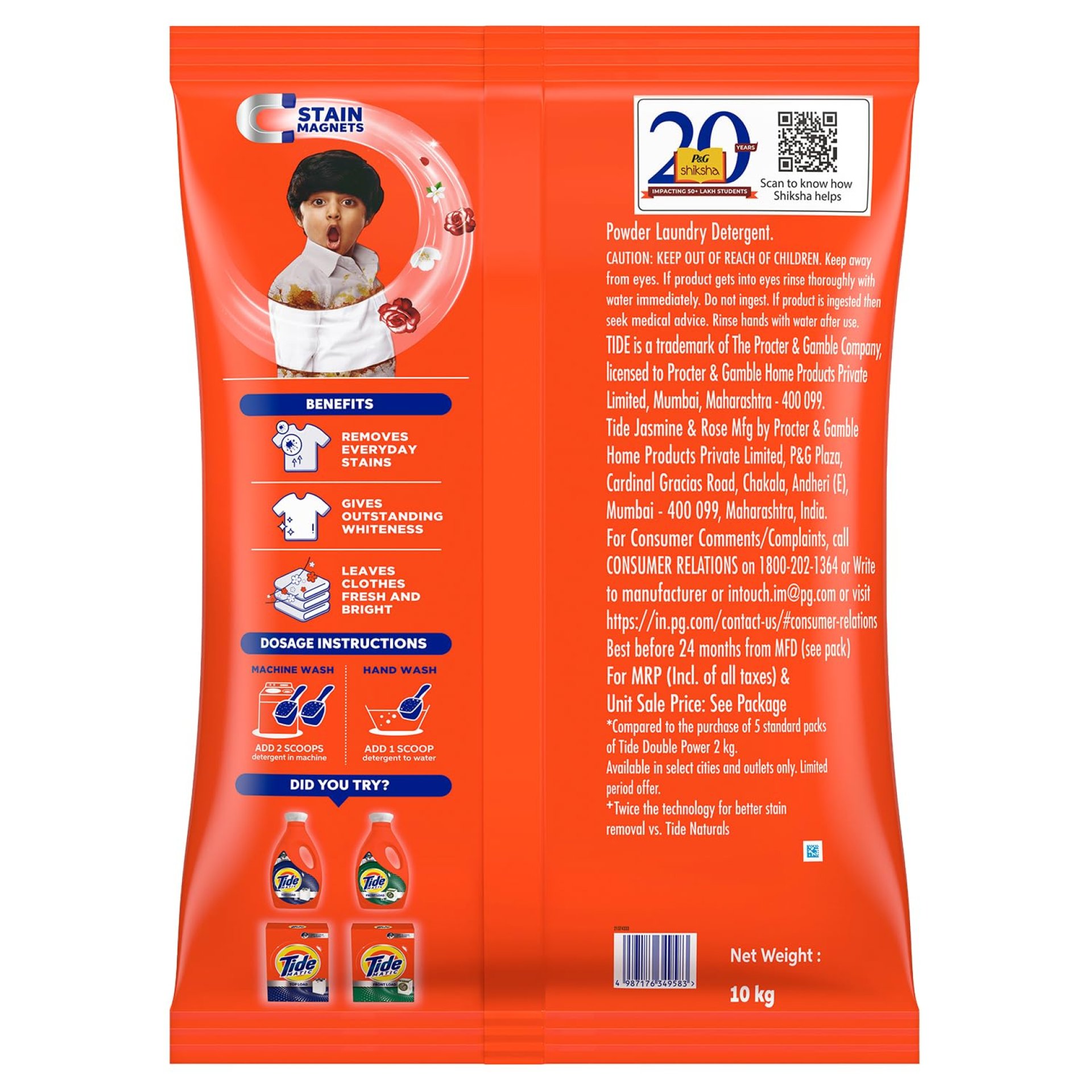 - Tide Plus Double Power has STAIN MAGNETS which remove the toughest of stains to give you stainless whites